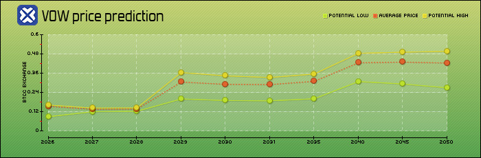 以下来自 BTCC 的预测表概述了 2026 年至 2050 年间 VOW 代币可能出现的最低价、平均价和最高价。这些数据基于历史趋势、市场分析和算法预测模型。